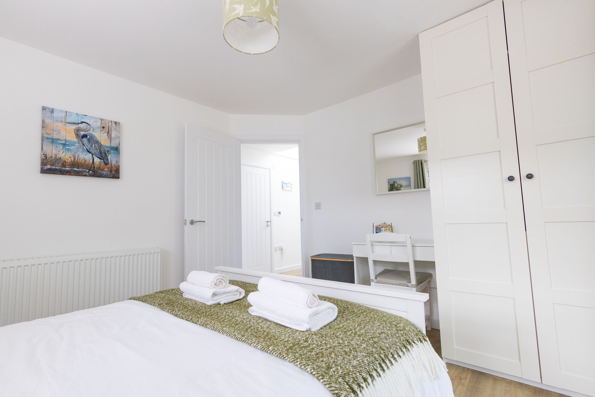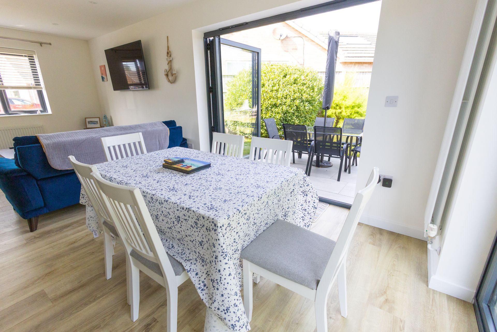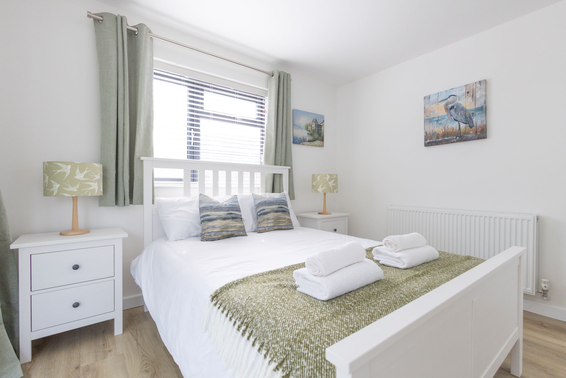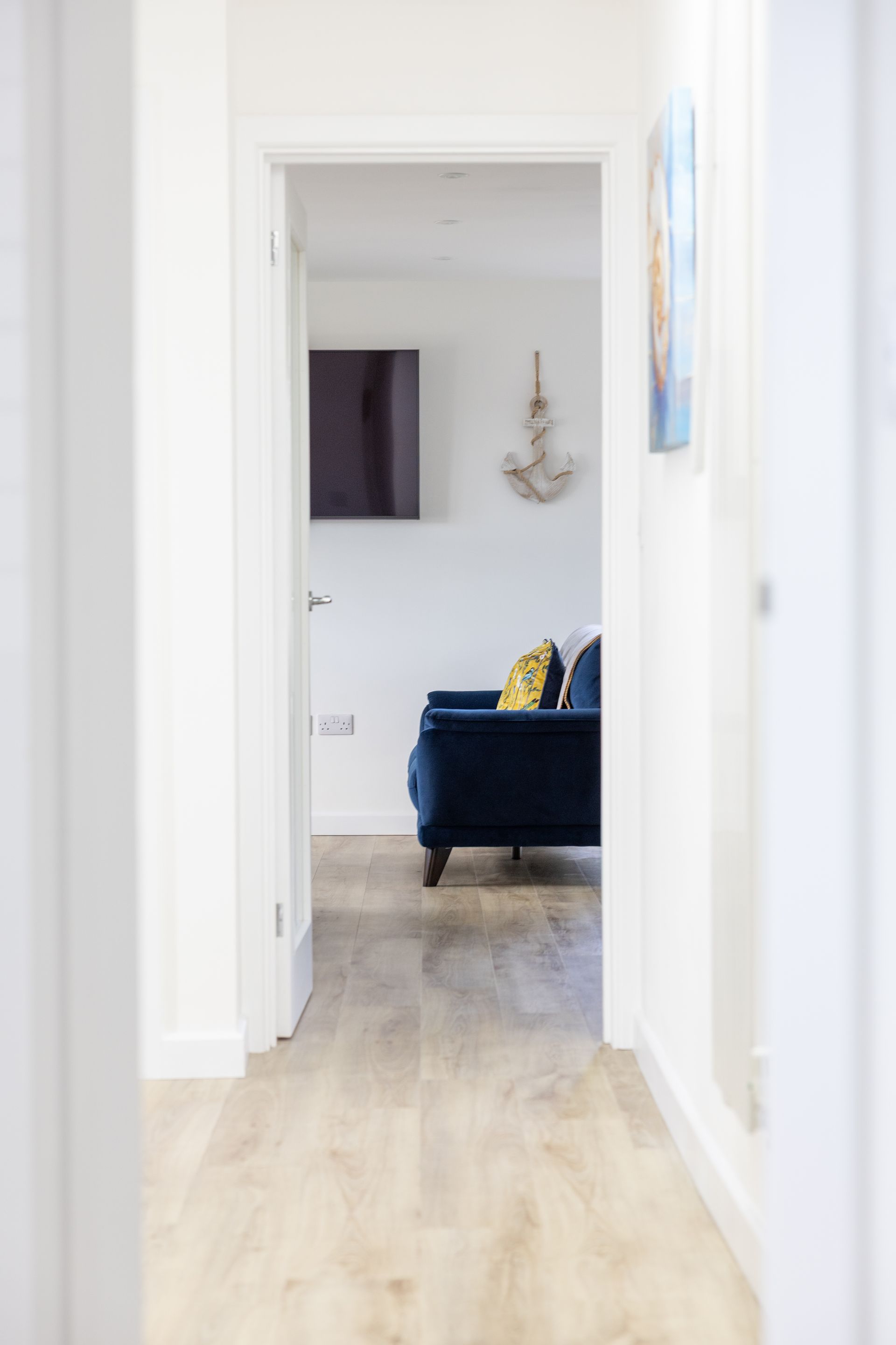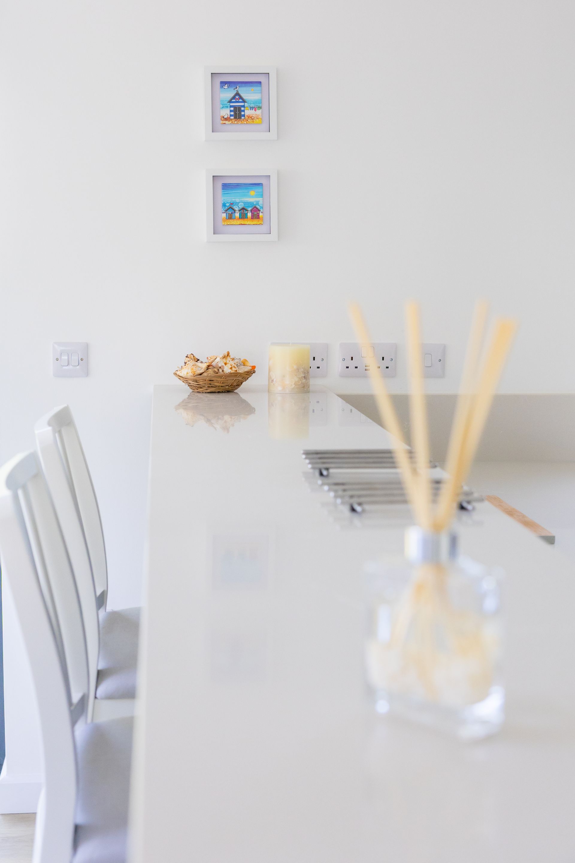 When you arrive at Mudeford Moments, you will be greeted by a light and spacious hallway leading to a fabulous open plan kitchen, dining, and lounge area. This is a wonderful space for spending time with family and friends and relaxing. The lounge is equipped with a large television for winding down after a day in the outdoors and the generous kitchen has everything you need (including oven, large fridge-freezer, microwave and dishwasher) to cook up your coastal culinary delights. There is an all-important filter coffee machine for serving up your morning beverage on the breakfast bar